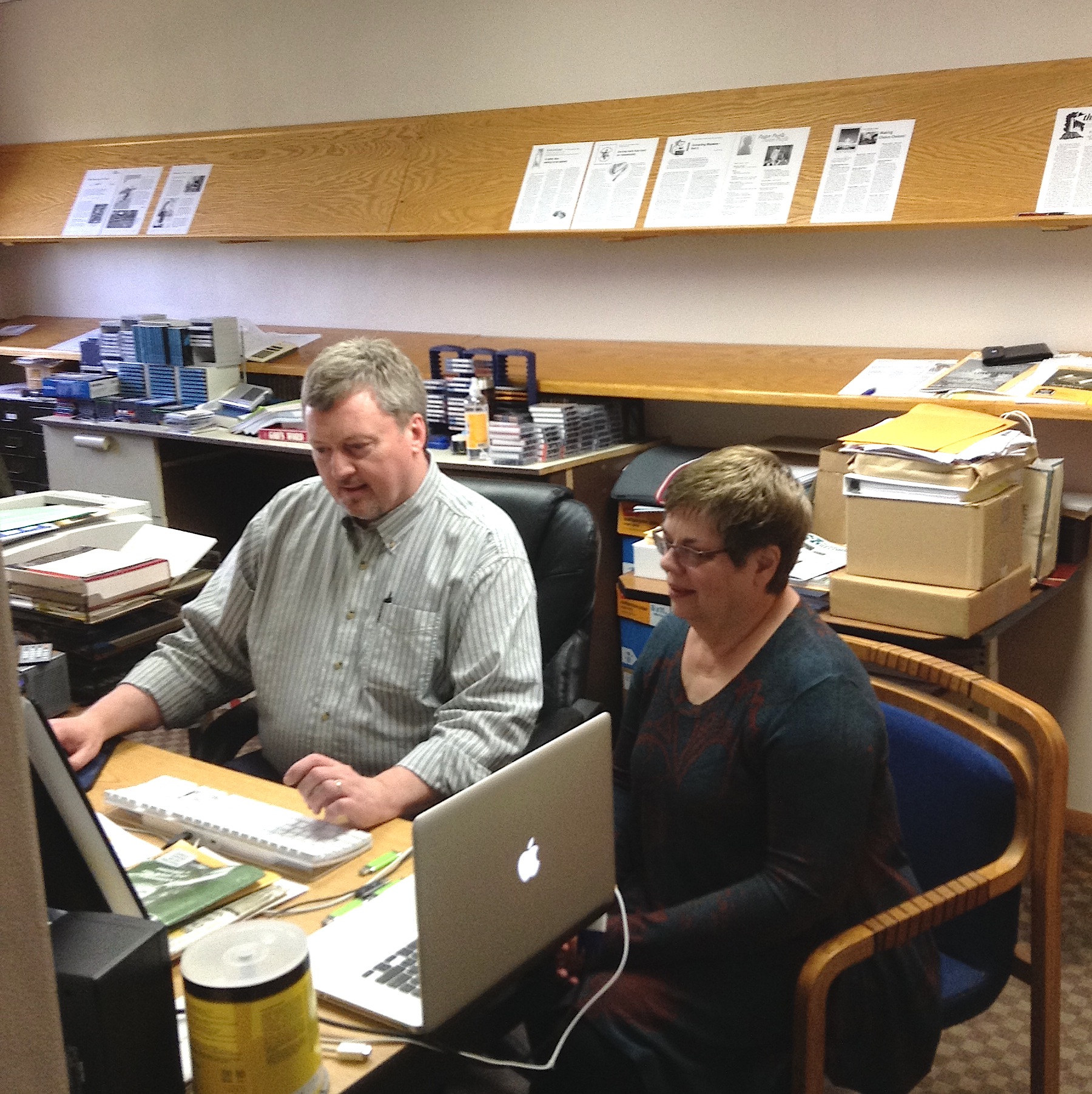 Pat Cruzan, newly-announced interim editor for the Sabbath Recorder magazine, is visiting the SDB Center in Janesville to begin the transition process.